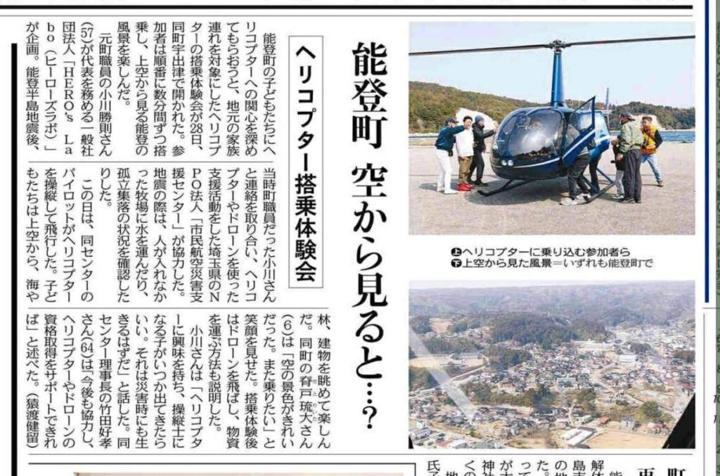 今回は、主に能登町の子供達を対象にヘリコプター搭乗体験会を行いました。